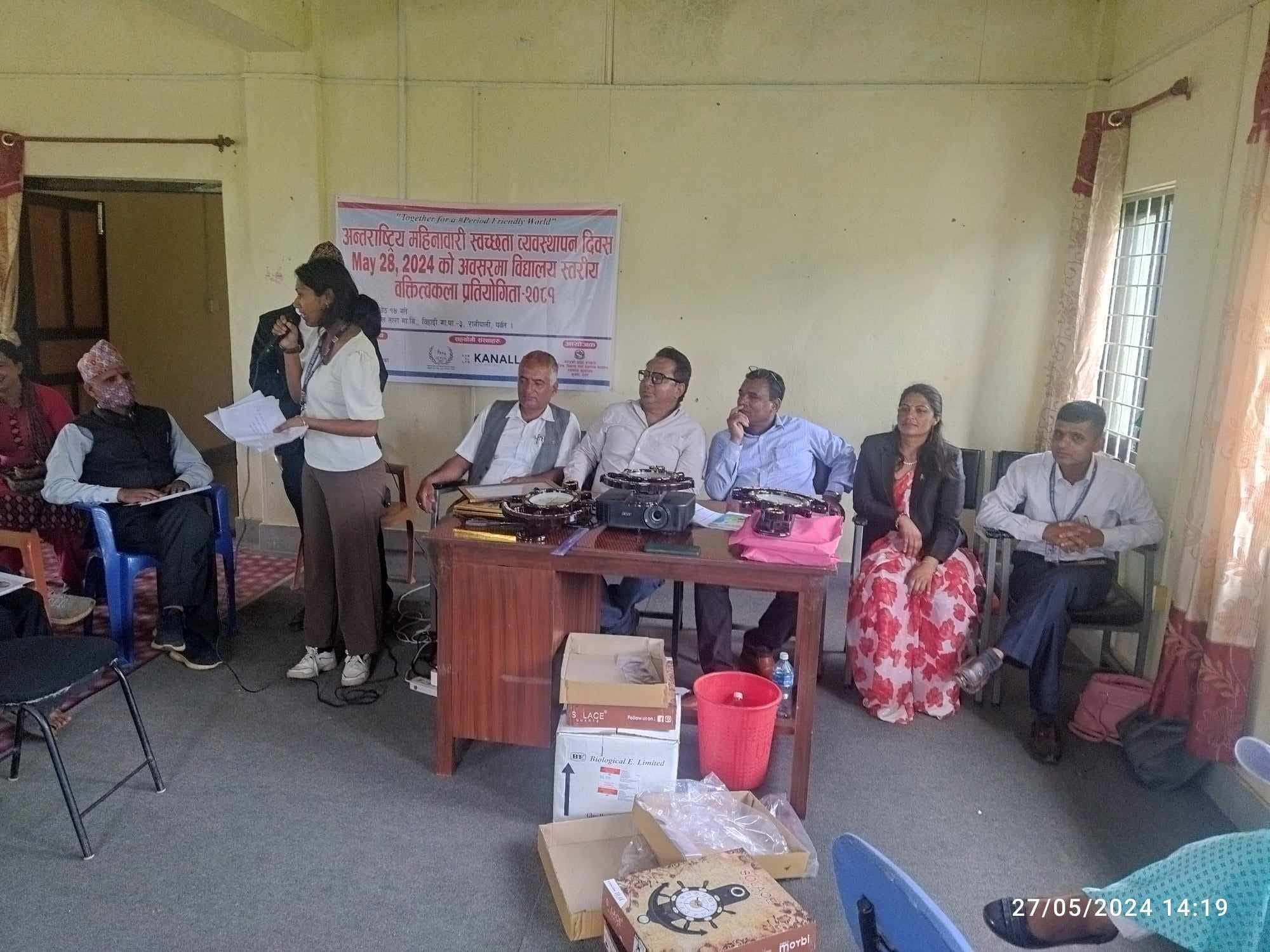 स्वास्थ्य कार्यालय पर्वतको आयोजना तथा विहादी गाउँपालिकाको समन्वयमा र JCYCN को सहयाेगमा अन्तर्राष्ट्रिय महिनावारी स्वच्छता व्यवस्थापन दिवस २०२४ मे २८ को अवसरमा "महिनावारी स्वास्थ्य र पुरुष सहभागिता " विषयमा आयोजना गरिएको बिद्यालय स्तरीय वक्तृत्व कला प्रतियोगिता विहादी गाउँपालिका अध्यक्ष परविन गुरुङको अध्यक्षता र जिल्ला समन्वय समिति, पर्वत प्रमूख बिष्णुराम वि. कको प्रमुख आतिथ्यतामा साथै बीहादी गा पाका उपाध्यक्ष मीना तिवारी , प्र प्र अ हरी भुषालको आतिथ्यतामा सम्पन्न भएको छ। प्रतियगितामा बीहादी गा पा का ७ माध्यमिक बिद्यालयका १/ १ छात्र छात्रा गरी १४ जना विद्यार्थी सहभागीता रहेकाे थियो भने प्रथम स्थान शालिग्राम मा विकी प्रतिमा तिवारी , दाेस्राे स्थान चन्द्र मा वि उराम की अमृता थापा , तेस्रो चन्द्र मा वि खोरपोखराका प्रतीक कडेल, सान्तोना बहाकी मा वि की नितु भट्टराई हुन सफल हुनु भएको थियो। प्रतियगितामा मूल्यांकन स्वास्थ्य कार्यालय पर्वतका जनस्वाथ्य अधिकृत अन्जली पि सि, पत्रकार महासंघ बाट माया अधिकारी , बिहादी गा पा शिक्षा शाखाका दिनेश भुसालले गर्नु भएकाे थियाे । कार्यक्रमको ब्यवस्थापन र सहजीकारण स्वास्थ्य कार्यालय पर्वतका प नि सु नि नारायण रेग्मीले गर्नु भएको थियो भने सञ्चालन बिहादी गा पा स्वास्थ्य शाखा प्रमुख भूपेन्द्र पौडेलले गर्नु भएको थियो ।
