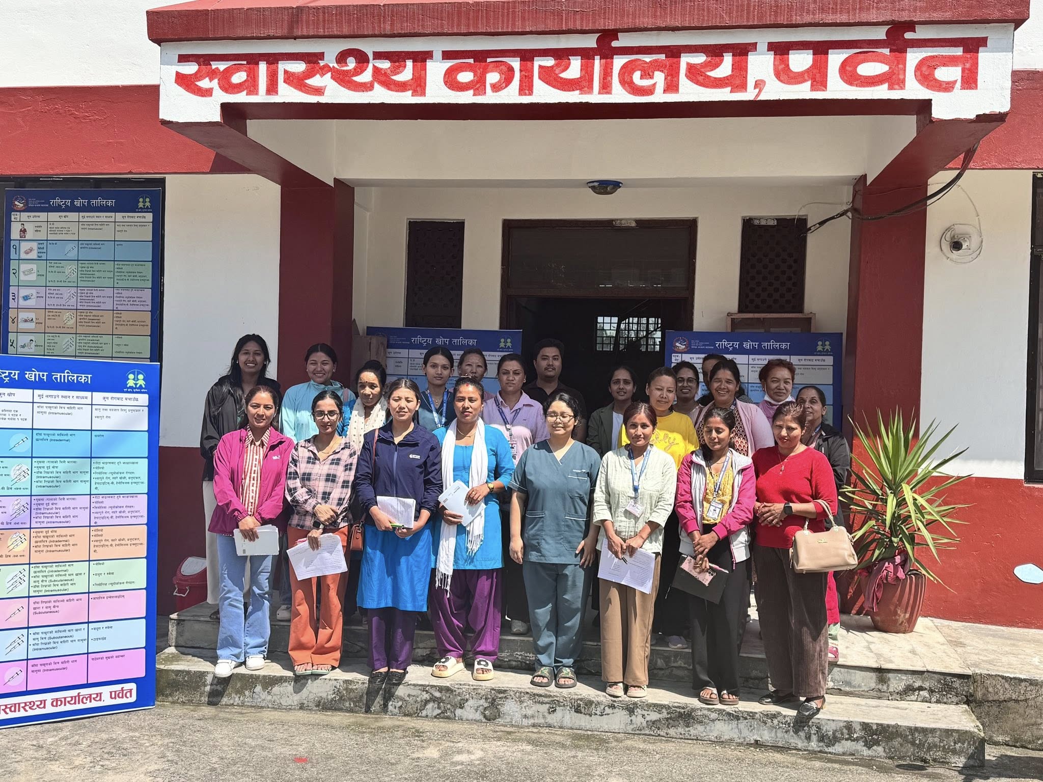 प्रदेश जनस्वास्थ्य कार्यालय कुश्मा पर्वतको आयोजनामा ANC TO PNC continuum of care को समिक्षा तथा अभिमुखिकरण कार्यक्रम प्रदेश जनस्वास्थ्य कार्यालयमा सम्पन्न भएको छ । कार्यक्रमको सहजीकरण प्रदेश अस्पताल कुश्माका मे. सु डा. हेमन्त बास्तोला , प्रदेश अस्पताल कुश्माका एम.डि.जि.पि डा. मिलन अवाले, धौलागीरी प्रादेशिक अस्पताल बाग्लुङका नर्सिङ अधिकृत निमा हिताङ, प्रदेश अस्पताल कुश्माका बरिष्ठ अस्पताल नर्सिङ निरिक्षक सरस्वति बराल , प्रदेश अस्पताल कुश्माका अस्पताल नर्सिङ निरिक्षक शोभा श्रेष्ठ , प्रदेश जनस्वास्थ्य कार्यालयका जनस्वाथ्य अधिकृत अन्जली पि.सी र प.हे.न.नि सुमन शर्माले गर्नु भएको थियो । कार्यक्रममा मातृ तथा नवशिशुको वर्तमान अवस्था,ANC TO PNC continuum of care, pregnancy registration and tracing Application, PPH Bundle Approach , Non pneumatic antishock garments, vitamin k1 , kangaroo mother care र Labour care Guide को विषयवस्तु जोडि प्रशिक्षण गरिएको थियो । स्थानिय तहका बर्थीङ सेन्टर र प्रदेश अस्पताल कुश्माका कार्यरत नर्सिङ कर्मचारीहरु, जनस्वास्थ्य कार्यालय पर्वतका शाखाका कर्मचारिहरु सहित २५ जनाको उपस्थिति रहेको थियो । प्रसूति हुन लागेको आमा र वच्चाको अवस्था थाहा पाउन पहिले प्रयोग गरिने Partograph को Replacement मा अहिले WHO Recommended Labour care guide रहेको छ । तालिममा सम्पुर्ण सहभागिहरुलाई Labour care guide भरेर अभ्यास गराईएको हुनाले आफ्नो संस्थामा आगामि दिनमा Labour care guide को प्रयोग गरिदिनुहुन अनुरोध गर्दछौ । यस कार्यक्रम सगै प्रदेश जनस्वास्थ्य कार्यालयले संचालन गर्ने यस आर्थिक वर्ष २०८१।८२का MNH सम्बन्धि सम्पुर्ण कार्यक्रमहरु समापन भएको जानकारी गराउँछौ ।