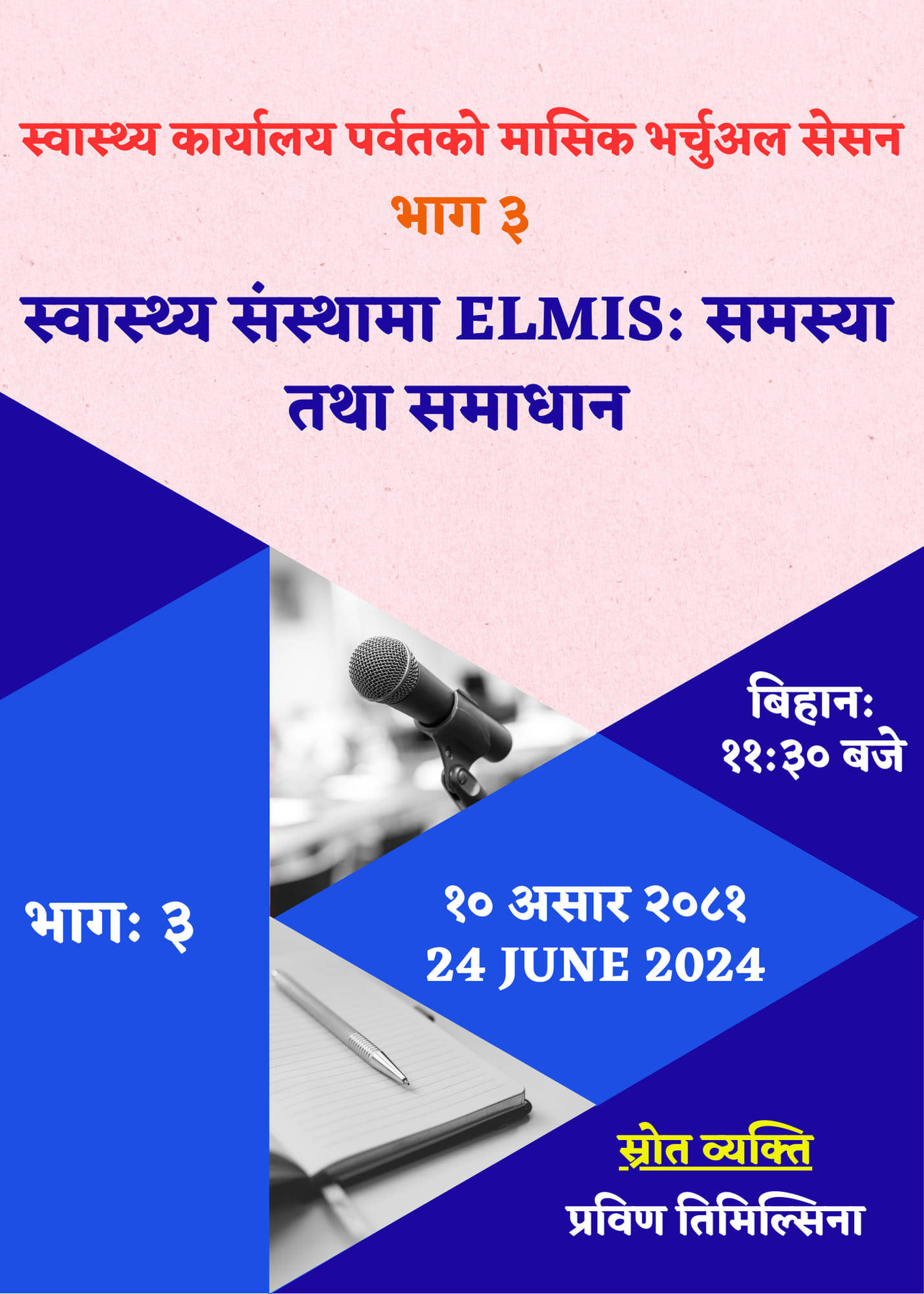 Download: भर्चुअल सेसन भाग ३ अन्तर्गत स्वास्थ्य संस्थामा eLMIS: समस्या तथा समाधान