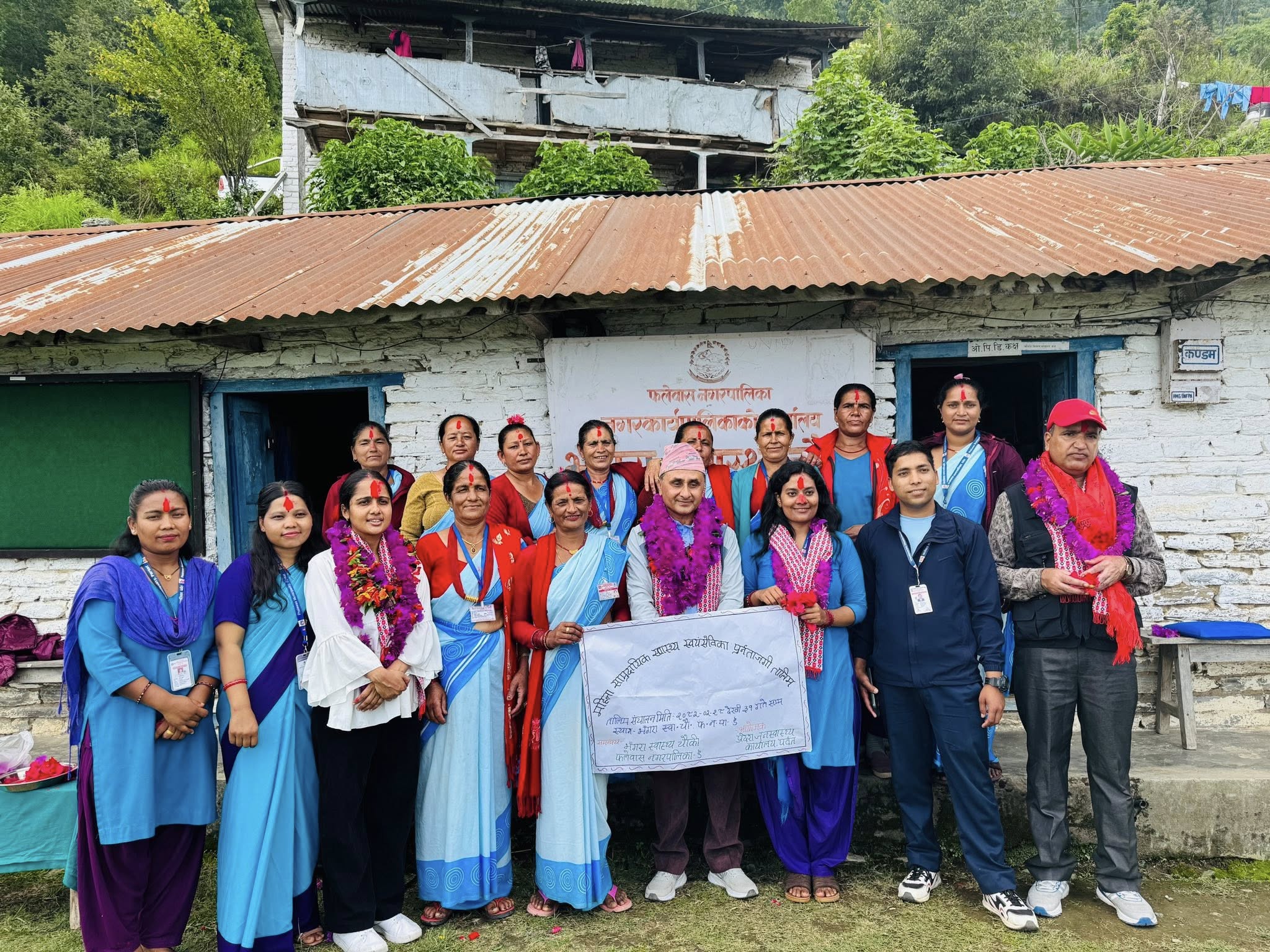 प्रदेश जनस्वास्थ्य कार्यालय पर्वतको आयोजनामा र फलेवास नगरपालिकाको समन्वयमा मिति 2082/02/28 देखि 02/31 सम्म फलेवास नगरपालिका ( भंगरा स्वास्थ्य चौकीमा ) महिला सामुदायिक स्वास्थ्य स्वयंसेविकाहरुको लागि पुनर्ताजगी तालिम प्रदेश जनस्वास्थ्य कार्यालय प्रमुख बद्रिराज आचार्यज्यु को अध्यक्षतामा र फलेवास नगरपालिका उपप्रमुख सोभा क्षेत्रीज्युको प्रमुख आतिथ्य्यतामा र कार्यक्रम फोकल पर्सन सुमन शर्माको संचालनमा समपन्न भएको छ । उक्त तालिममा जम्मा 9 जना महिला सामुदायिक स्वास्थ्य स्वयंसेविकाहरुको सहभागिता रहेको थियो । तालिममा मुख्य प्रशिक्षण गर्ने पब्लिक हेल्थ नर्स बिन्दु गौतम , हे. अ बिरबल बि.क र प्रशिक्षण सहित सम्पुर्ण व्यवस्थापन गर्ने स्वास्थ्य चौकी प्रमुख, नर्सिङ कर्मचारीहरु र पारामेडिकज्यूहरुलाई धन्यवाद दिन चाहन्छौ । तालिममा खोप, पोषण, सुरक्षित मातृत्व , गर्भपतन , नसर्ने रोग जस्ता महत्वपूर्ण विषयमा छ्लफल गरिएको छ ।