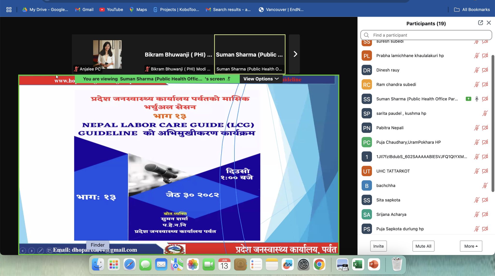 प्रदेश जनस्वास्थ्य कार्यालय पर्वतद्वारा शुन्य लागतमा शुरु भएको मासिक भर्चुअल सेसन भाग १३ अन्तर्गत २०८२जेठ को virtual सेसन " Nepal Labor care guide (LCG) guideline को अभिमुखीकरण कार्यक्रम " शिर्षकमा प्रदेश जनस्वास्थ्य कार्यालय कुश्मा पर्वतका प्रमुख बद्रिराज आचार्यको अध्यक्षतामा सम्पन्न भएको छ । उक्त सेसनको संचालन प्रदेश जनस्वास्थ्य कार्यालय पर्वतका जनस्वास्थ्य अधिकृत अन्जली पि.सी गर्नु भएको थियो भने सहजीकरण प्रदेश जनस्वास्थ्य कार्यालय पर्वतका प.हे. न. नि सुमन शर्माले गर्नुभएको थियो । १ घन्टा भन्दा लामो सेसनमा जिल्लाका विभिन्न स्वास्थ्य संस्था बाट जुम आइडी मार्फत करिव ४० जना भन्दा बढी स्वाथ्यकर्मीहरुको सहभागिता रहेको थियो ।