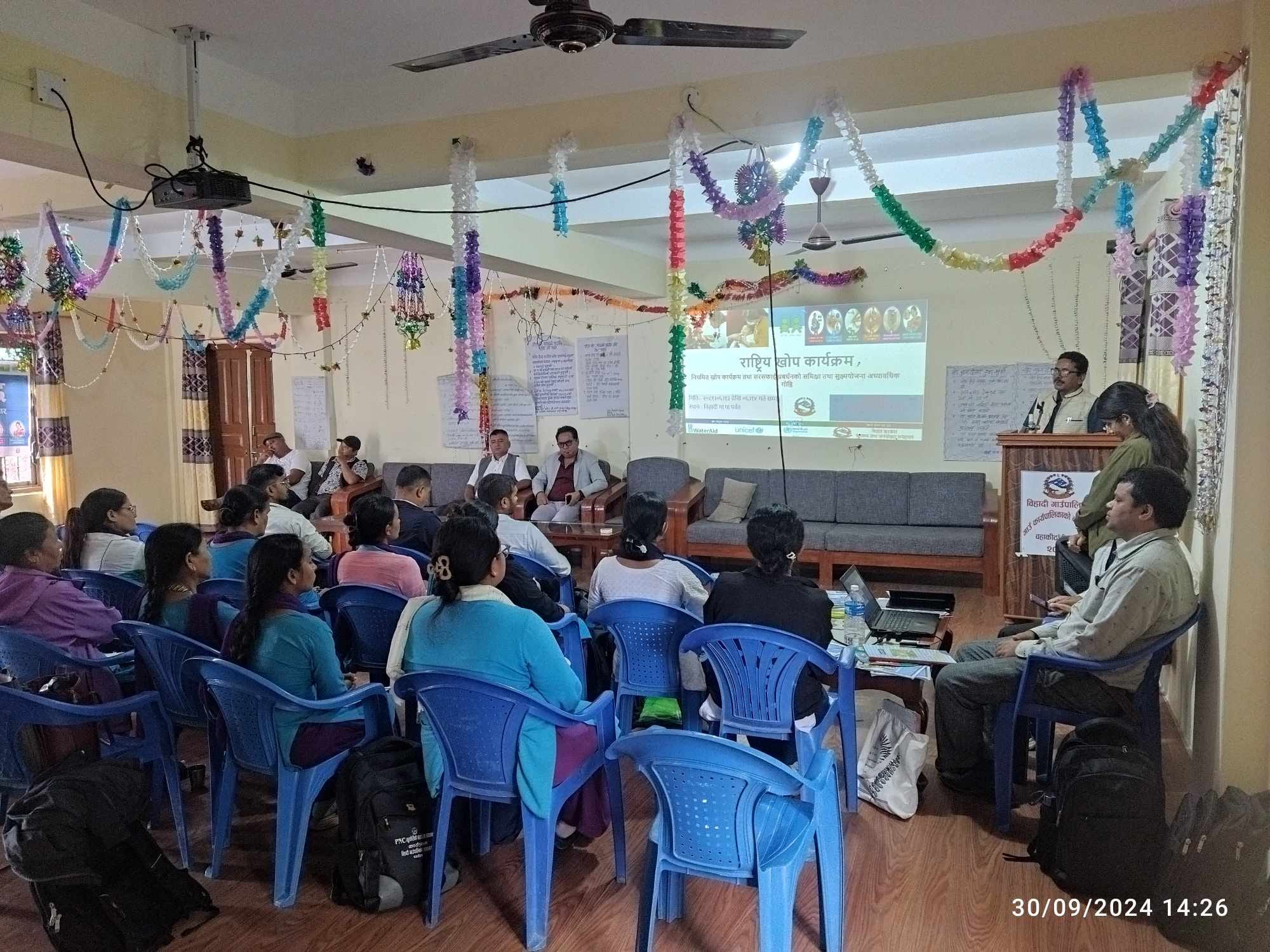 स्वास्थ्य कार्यालय, पर्वतको आयोजना र स्वास्थ्य शाखा विहादी गाउँपालिका काे समन्वयमा मिति 2081/06/13 र 14 गते सञ्चालन भएको नियमित खोप कार्यक्रम तथा सरसफाई प्रवर्द्धनकाे समिक्षा तथा सुक्ष्मयोजना अध्यावधिक गोष्ठी गाउँपालिकमा सम्पन्न भएको छ। विहादी गाँउपालिका का अध्यक्ष श्री परविन गुरुङ ज्यूको अध्यक्षता र उपाध्यक्ष श्री मिना शर्मा तिवारीकाे आथीत्यता यवम वार्ड अध्यक्षहरुको उपस्थितिमा सञ्चालन भएको सो कार्यक्रममा प्रमुख प्रशासकिय अधिकृत श्री हरि प्रसाद भुसाल, पैंयू गाउँ पालिका स्वास्थ्य शाखा प्रमुख देवी भुर्तेल र खोप कार्यक्रमका फोकल व्यक्ति तथा परिवार नियोजन सुपर भाईजर निरिक्षक श्री नारायण प्रसाद रेग्मीले सहजीकरण गर्नु भएको थियो।उक्त कार्यक्रममा विहादी गाउँपालिका अन्तर्गत सबै स्वास्थ्य संस्था बाट स्वास्थ्य संस्था प्रमुख र खोप दिने स्वास्थ्यकर्मीहरुकाे सहभागिता रहेको थियो