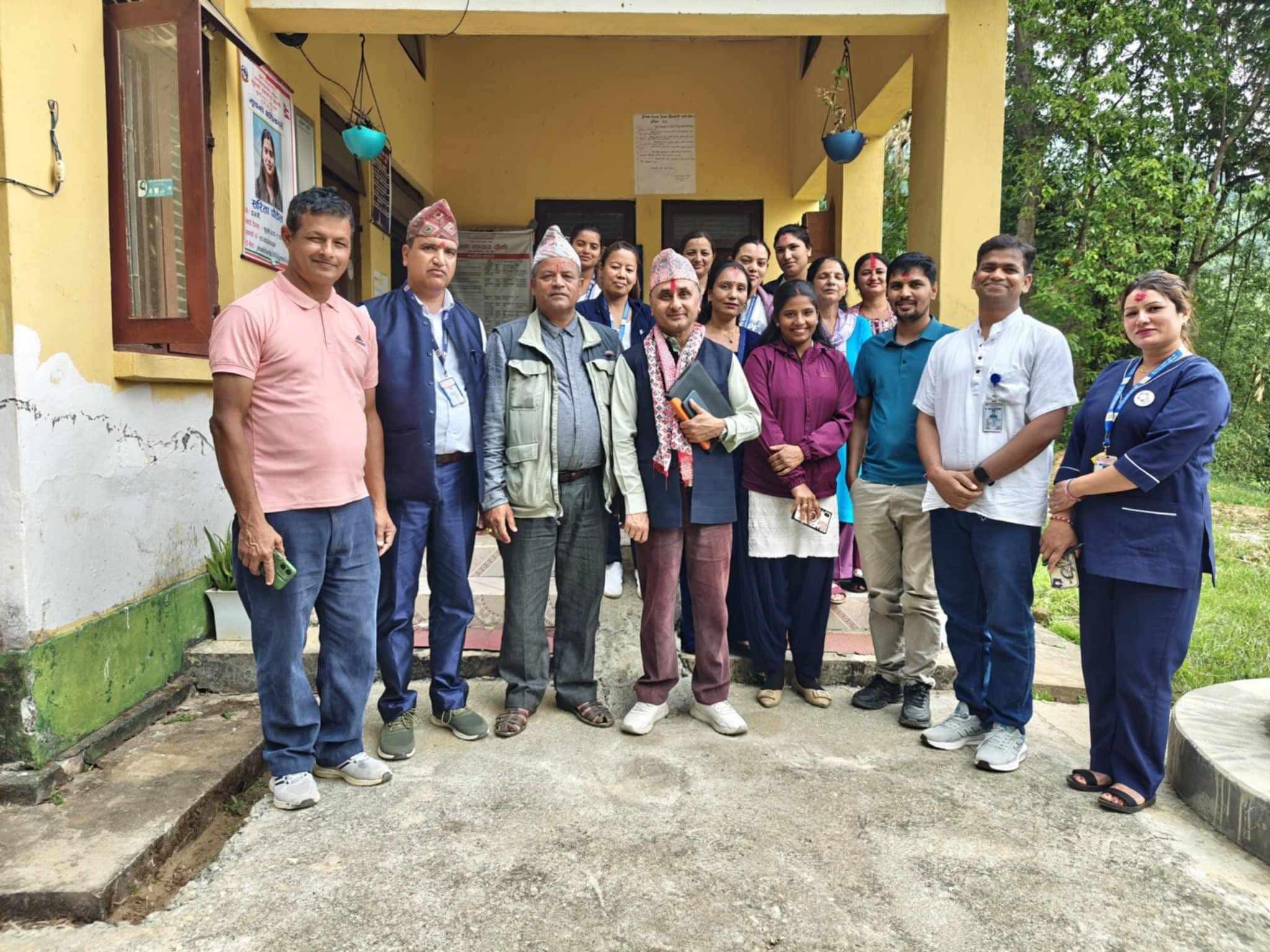 प्रदेश जनस्वास्थ्य कार्यालय पर्वतको आयोजनामा मिति 2082/01/15 गते कुश्मा 01 पाङ् ततरकोटमा संचालन हुन लागेको पोषण लेखाजोखा कार्यक्रमको पूर्ब तयारीको शिलशिलामा कुश्मा १ पाङ्का वडा अध्यक्ष ज्यु, प्रदेश जनस्वास्थ्य कार्यालय प्रमुख ज्यु लगायत सरोकारवालासंगको छलफल पछि लीएको सामूहिक तस्विर