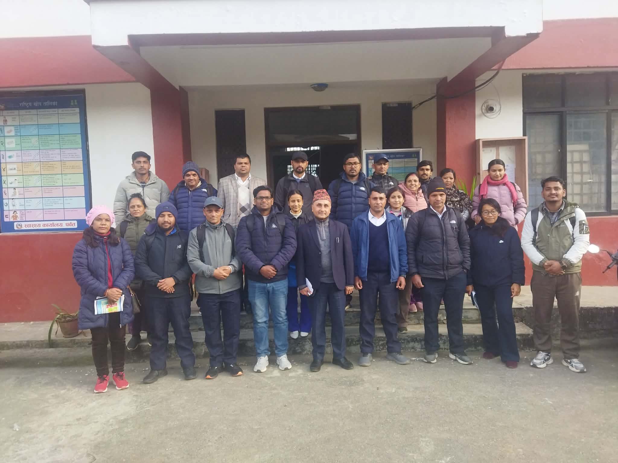 प्रदेश जनस्वास्थ्य कार्यालय पर्वतकोआ.व. 2082/083 काे बार्षिक स्वीकृत कार्यक्रम अनुसार प्रदेश जनस्वास्थ्य कार्यालय कुस्मा पर्वतको आयोजनामा मिति 2082/09/21 र 22 गते प्रदेश जनस्वास्थ्य कार्यालय पर्वतको तालिम हलमा नियमित खोप खोप सेवा तथा सरसफाई प्रवर्द्धन सम्बन्धी समिक्षा एबं सुक्ष्म योजना अध्यावधिक गोष्ठी (तेस्रो ब्याच) सञ्चालन गरियो । उक्त कार्यक्रमको अध्यक्षता प्रदेश जनस्वास्थ्य कार्यालय पर्वतका कार्यालय प्रमुख श्री बद्रीराज आचार्य ज्यूले गर्नु भएको थियो भने कार्यक्रम सञ्चालन प्रदेश जनस्वास्थ्य कार्यालयका परिवार नियोजन सुपर भाईजर निरीक्षक श्री नारायण प्रसाद रेग्मीले गर्नु भएको थियो । उक्त 2 दिने गोष्ठीकाे सहजीकरण प्रदेश अस्पतालका एम डी जिपी डा मिलन अवाले, कार्यालय प्रमुख श्री बद्रीराज आचार्य,जनस्वास्थ्य अधिकृत सन्देश पोख्रेल तथा पनिसुनि एबं खोप कार्यक्रम संयोजक नारायण प्रसाद रेग्मीले सहजीकरण गर्नु भएको थियो। उक्त तालिममा पर्वत जिल्लाका दुई वटा स्थानीय तह कुश्मा नगरपालिका र मोदी गाउँ पालिकामा कार्यरत स्वास्थ्य शाखा प्रमुख,खोप फोकल पर्सन, पालिका अन्तर्गत स्वास्थ्य संस्थामा कार्यरत स्वास्थ्य संस्था प्रमुख प्रदेश अस्पतालको MCH शाखामा कार्यरत स्वास्थ्यकर्मी गरी 28 जनाको सहागिता रहेको थियो ।