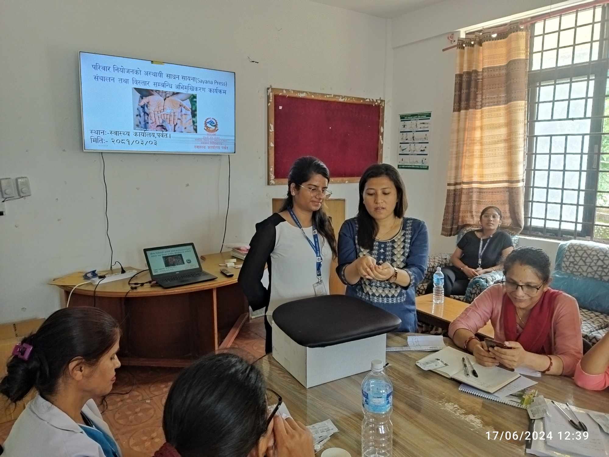सायना प्रेस( Sayana press) को विस्तार तथा प्रयोग सम्बन्धी जिल्ला स्तरीय अभिमुखिकरण गोष्ठी