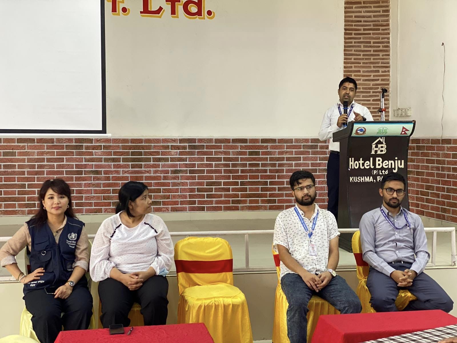 बिश्व स्वास्थ्य संगठन,नेपालको आयोजना र स्वास्थ्य कार्यालय पर्वतको समन्वयमा vaccine preventable disease (VPD) को अभिमुखिकरण कार्यक्रम स्वास्थ्य कार्यालय पर्वतका प्रमूख प्रविण शर्माको अध्यक्षतामा सम्पन्न भएको छ। कार्यक्रमको सहजीकरण बिश्व स्वास्थ्य संगठनका WHO SMO IPD officer डा स्मृति लामाले गर्नु भएको थियो भने संचालन स्वास्थ्य कार्यालय पर्वतका खाेप फोकल पर्सन नारायण प्रसाद रेग्मीले गर्नु भएकाे थियाे जहाँ जिल्लाका सात स्थानिय तहका स्वास्थ्य शाखा प्रमूखहरु , VPD रिपोर्टिङ्ग युनिटका स्वास्थ्य इन्चार्जहरु, ल्याबका स्वास्थ्यकर्मीहरु , मेडिकल अधिकृतहरु , जनस्वाथ्य अधिकृतहरु गरि ८२ जनाको उपस्थिति रहेको थियो ।