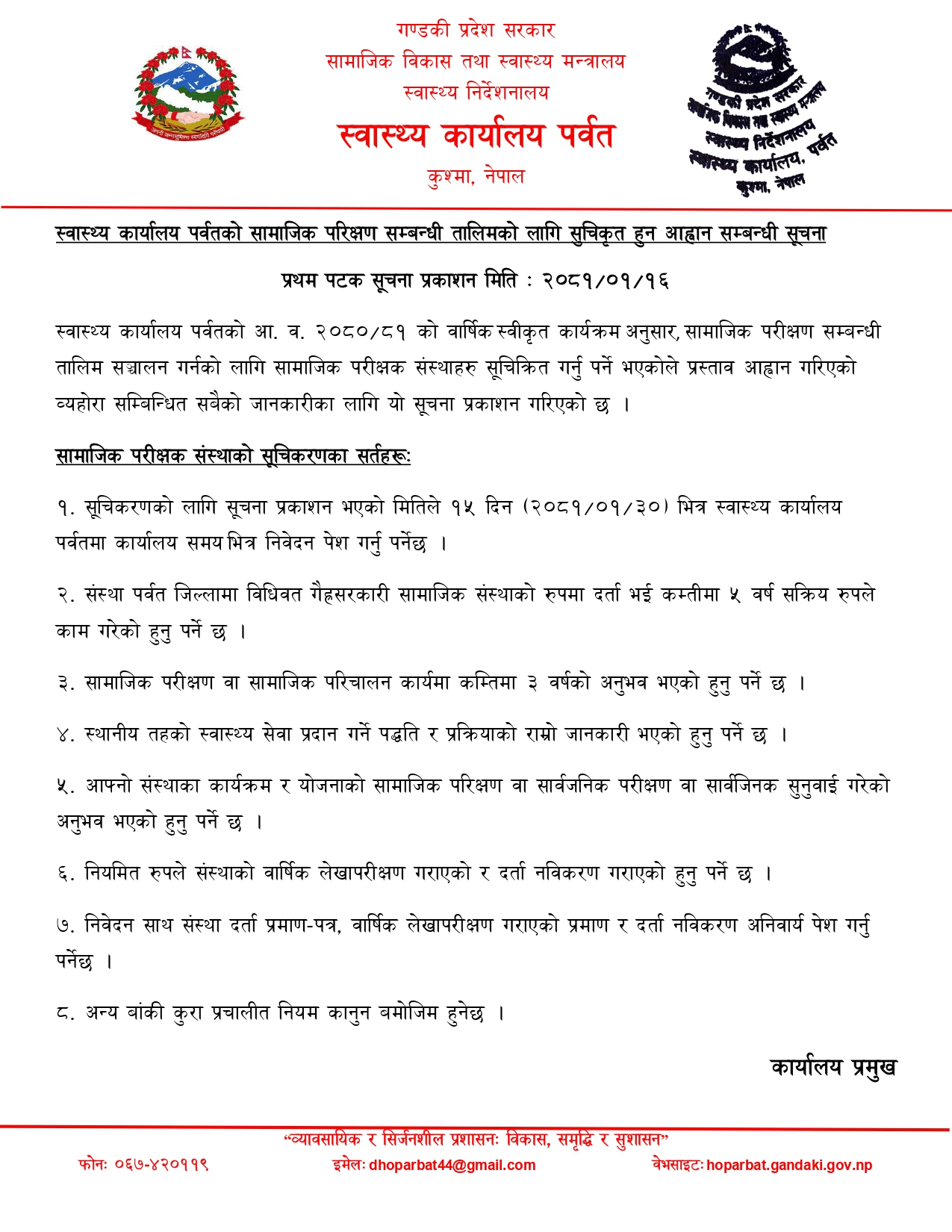 Download: सामाजिक परिक्षण सम्बन्धि तालिमको लागि सुचिकृत हुन आह्वान सम्बन्धि सूचना