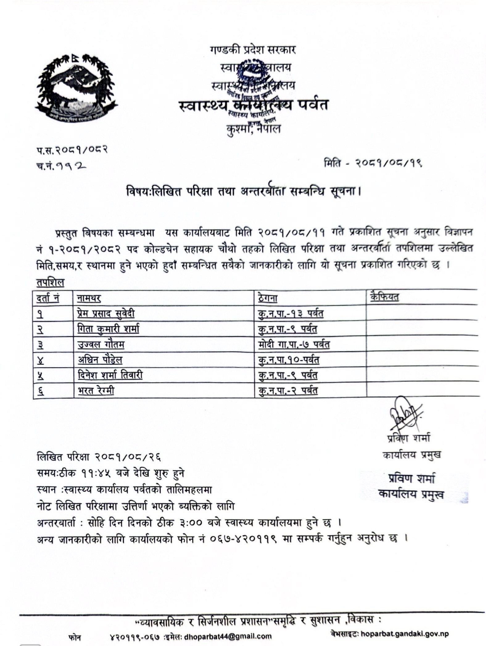 Download: लिखित परिक्षा तथा अन्तर्वाता सम्बन्धि सूचना