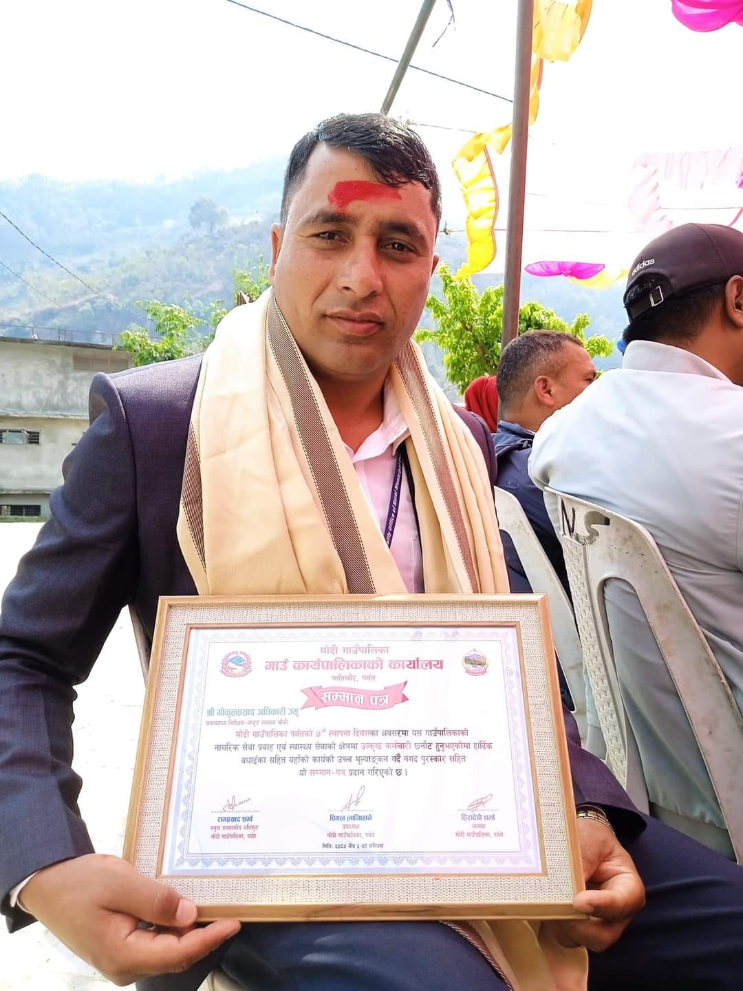 उत्कृष्ट स्वास्थ्यकर्मीको रुपमा सम्मानित (मोदी गाउँपालिका)