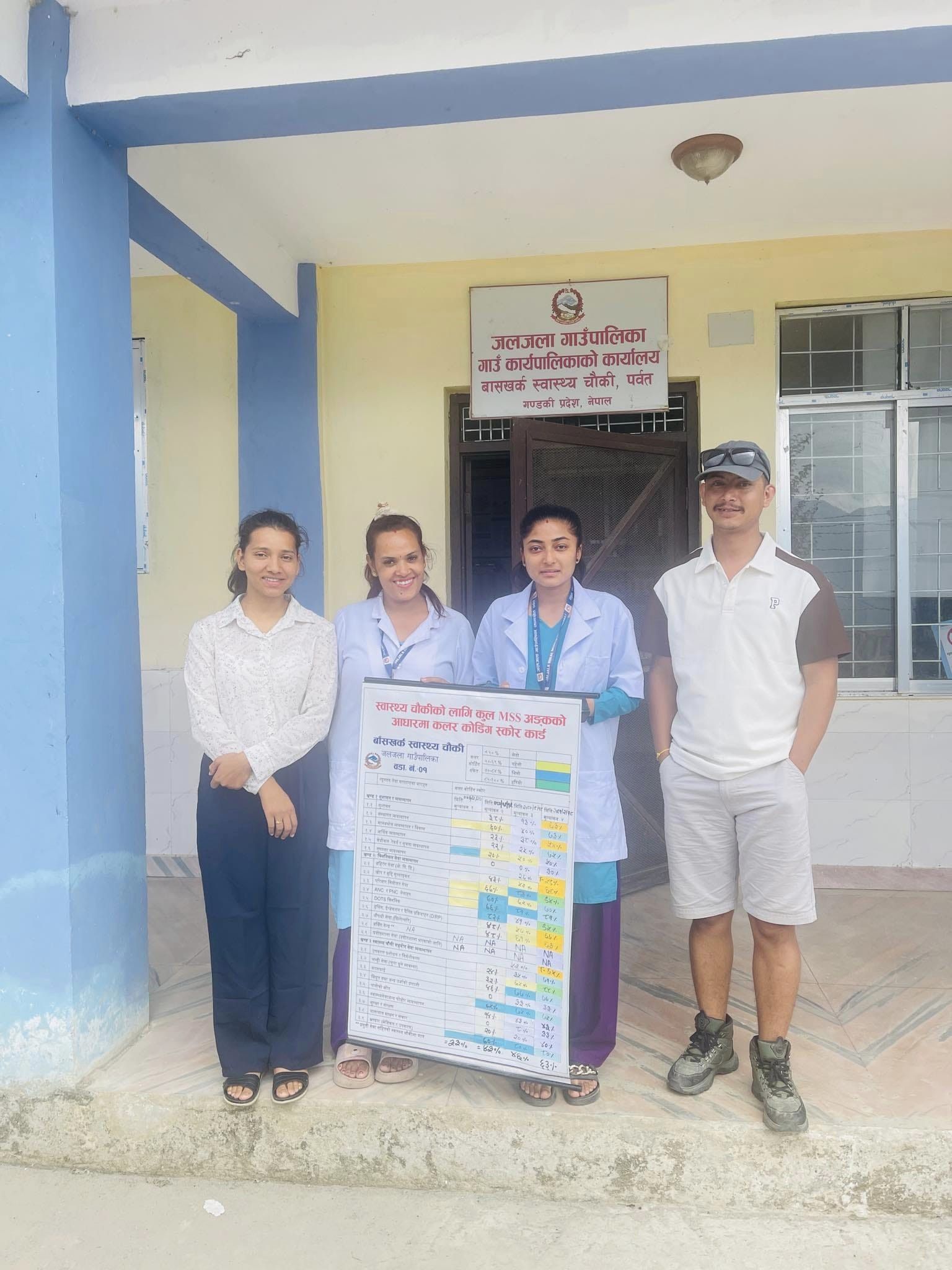 मिति २०८१/०२/१८ गते जलजला गाउँपालिकाको आयोजना ,वान हार्ट वल्ड वाईड को प्राविधिक सहयोग र वासँखर्क स्वास्थ्य चौकि को समन्वयमा न्युनत्तम सेवा मापदण्ड कार्यक्रमको चौथो मुल्यांकनमा ४६%बाट ६३% ल्याउन सफल भएको छ।